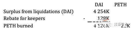 在12.8万DAI的折扣优惠之后,21,591.48的PETH,价值413万的DAI被烧毁。